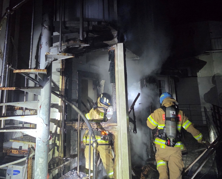 지난 16일 새벽 제주시 조천읍 와흘리의 한 단독주택 2층에서 화재가 발생했다. 제주소방안전본부 제공