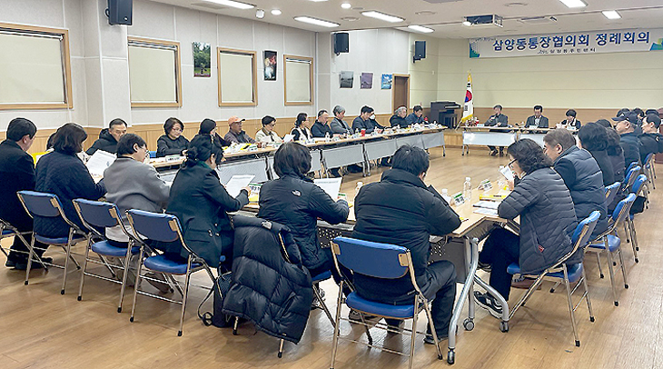 제주시 삼양동통장협의회(협의회장 강명길)는 지난 12일 동주민센터 회의실에서 통장과 관계공무원 등 40여 명이 참여한 가운데 2월 정례 통장회의를 개최했다.