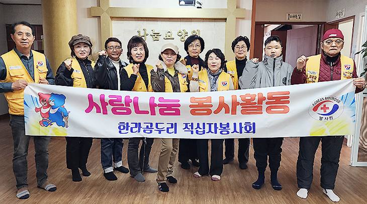 한라곰두리 적십자봉사회(회장 박국찬)는 지난 15일 설을 앞두고 제주시 도평동 소재 나눔요양원(원장 김옥순)을 방문해 입소 어르신들의 편의를 위해 사랑의 쌀 전달, 환경정비 및 주방 도우미활동 등 봉사 활동을 전개했다.