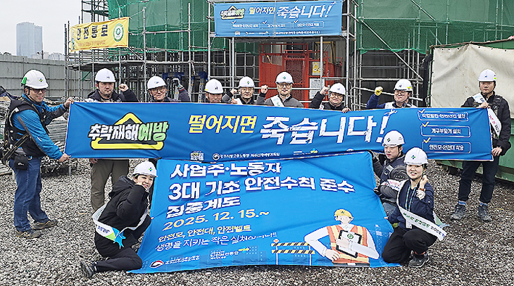 이날 3대 기초 안전수칙 준수(안전모 착용·안전대 착용·안전벨트 착용)를 주제로 안전점검 및 캠페인을 진행했다.