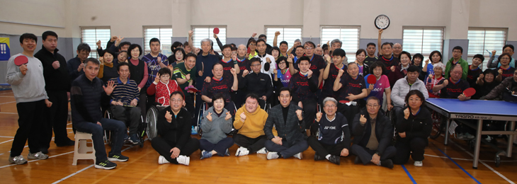 제주도장애인탁구협회(회장 현용대)와 제주시장애인탁구협회(회장 이봉주)는 지난 2일 탐라장애인복지관에서 '제46회 전국장애인체전 성공 개최 및 장애인탁구선수단 선전 기원 어울림탁구대회'를 개최했다.