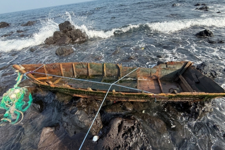 지난 1월29일 제주시 애월읍의 한 해안가에서 발견된 의문의 목선. 기사의 특정 사실과 관련 없음. 한라일보DB