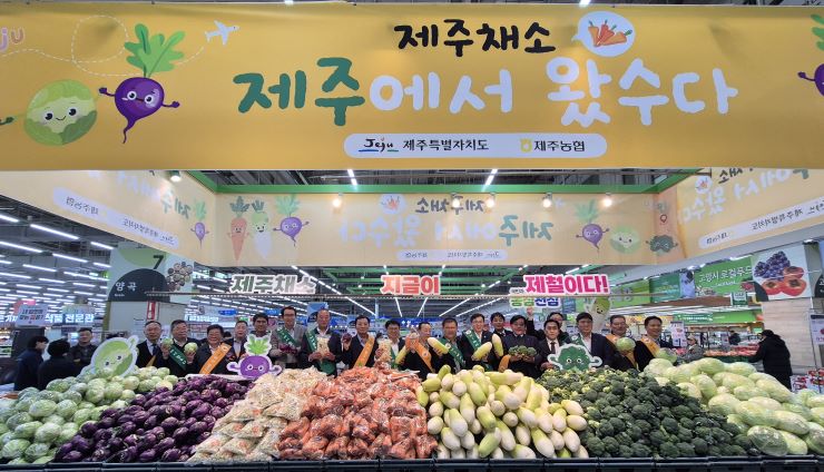 제주농협과 제주도는 5일 '제주 월동채소 페스타' 기념식을 농협하나로마트 고양점에서 열어 채소류의 우수성을 홍보하고, 할인행사도 진행했다. 제주농협 제공