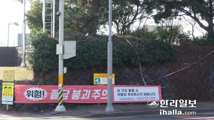 [현장] 돌담 붕괴 위험인데… 고작 현수막 내건 …