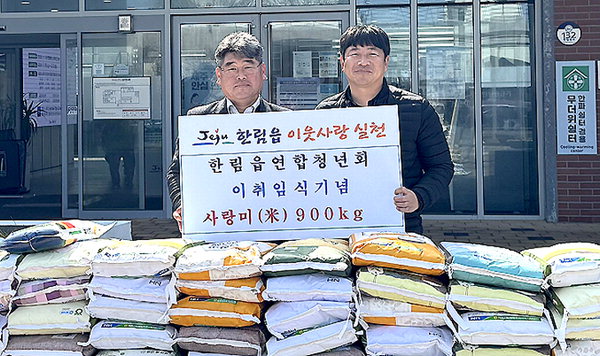 [한라일보] 주시 한림읍연합청년회는 최근 '제25·26대 한림읍연합청년회 회장단 이·취임식'에서 받은 쌀 900㎏을 한림읍(읍장 고석건)에 전달했다.