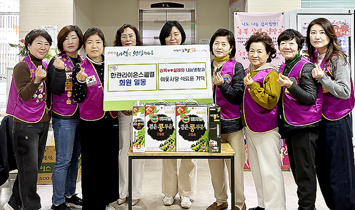 국제라이온스 354-G지구 한란라이온스클럽(회장 김정림)은 11일 회원들이 참석한 가운데 제주시 노형동주민센터를 방문해 지역 나눔 창구인 '솜뽁살레'에 물품을 기부했다.