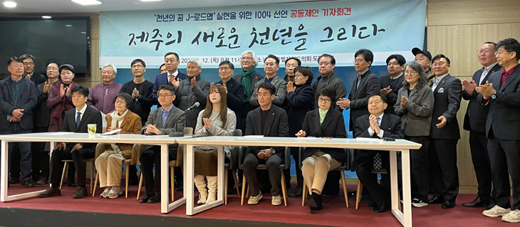 이어 "후보들의 공약화를 견인하고 로드맵 추진의 범국민적 지지를 결집하기 위해 'J-로드맵 실현을 위한 1004 선언'을 추진하고자 한다"며 "제주도민 704명과 전국 국민 300명의 뜻을 하나로 모으겠다"고 말했다.