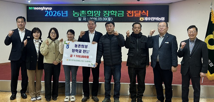 제주안덕농협(조합장 이한열)은 지난 9일 '2026년 제주 희망 장학금 전달식'을 갖고 안덕농협 조합원 자녀 5명에게 총 190만원을 전달했다.