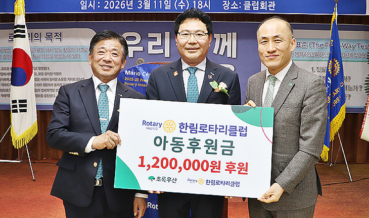 초록우산 제주지역본부(본부장 김희석)는 지난 11일 제주시 한림읍에 위치한 한림로타리클럽 회관에서 진행된 국제로타리3662지구 한림로타리클럽(회장 고창문) 창립 44주년 기념식을 통해 아동후원금 120만원을 전달받았다.