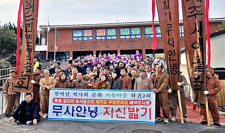 제주시 하귀2리민속보존회(회장 문동원)는 지난 8일 하귀2리 일원에서 마을의 액운을 몰아내고 주민들의 무사안녕과 풍요를 기원하는 '지신밟기' 행사를 개최했다.