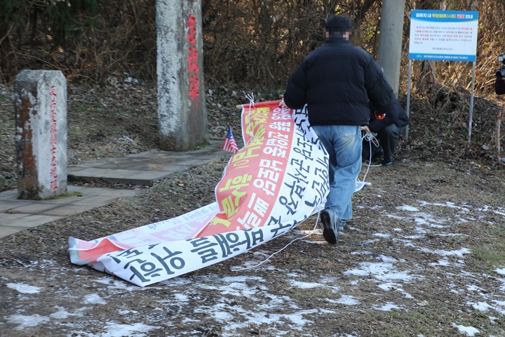 4·3 역사 왜곡 행위로 철거된 현수막. 한라일보 자료사진