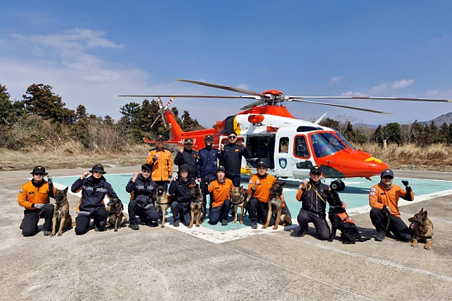 제주소방, 초광역 헬기·구조견 합동 훈련 실시