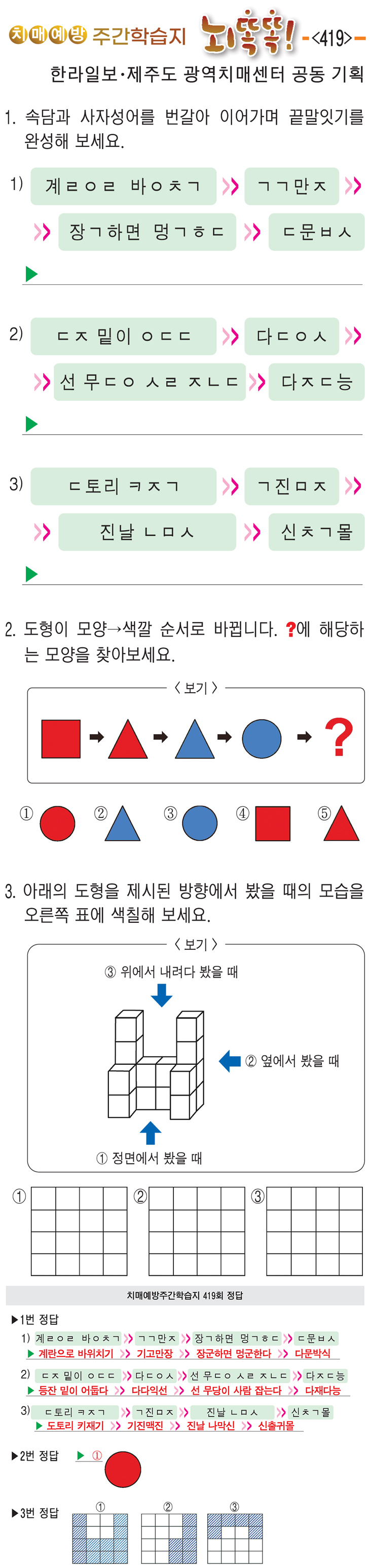 [치매예방주간학습지 뇌똑똑] (419)