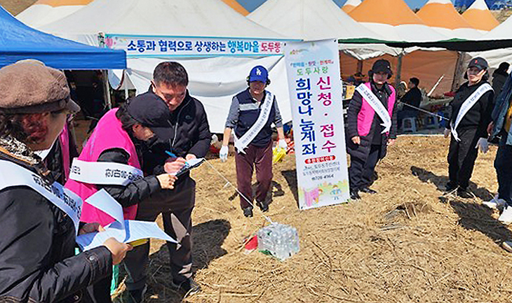 제주시 도두동지역사회보장협의체(공동위원장 임병규·성애라)는 지난 13일 들불축제 행사장 내에서 복지사각지대 발굴을 위한 '희망나눔 캠페인'을 실시했다.
