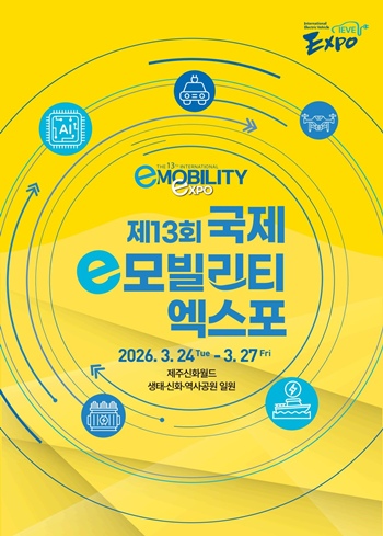 [한라일보] 세계 e-모빌리티 산업의 미래 지형도를 엿볼 수 있는 '제13회 국제 e-모빌리티 엑스포'가 오는 3월 24일부터 27일까지 제주 신화월드에서 개최된다.