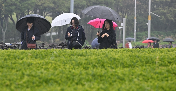 봄비 내리는 녹차밭. 한라일보DB