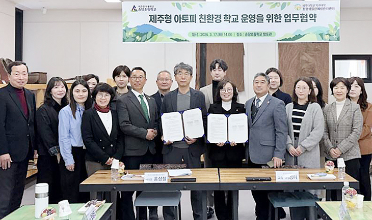 제주대학교 의과대학 환경성질환예방관리센터는 지난 17일 제주형 자율학교인 송당초등학교와 '제주형 아토피 친환경 학교 운영을 위한 업무협약'을 맺었다.