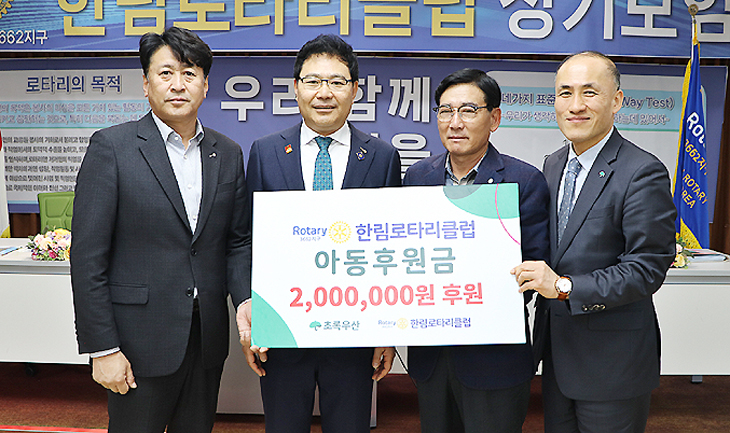 초록우산 제주지역본부(본부장 김희석)는 지난 26일 한림로타리클럽 회관에서 진행된 국제로타리3662지구 한림로타리클럽(회장 고창문) 정기모임을 통해 아동후원금 200만원을 전달받았다. 후원금은 최근 작고한 한림로타리클럽 30대 회장이자 초록우산 제주후원회 직전회장인 故 조은덕님을 기리는 의미로 전달된 것으로, 지역 내 취약계층 아동들을 위한 장학금으로 지원될 예정이다. 고창문 회장은 "앞으로도 세상에 희망을 전하는 클럽이 될 수 있도록 지속적으로 다양한 봉사를 실천하겠다"고 소감을 전했다.
