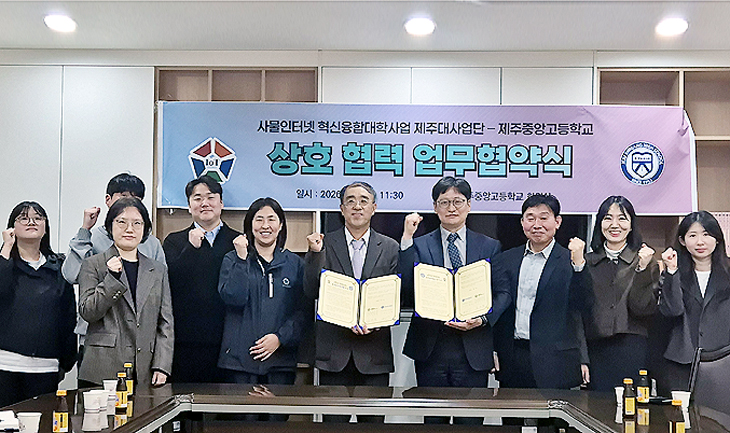 제주중앙고는 올해 인공지능·디지털 활용 연구학교로 선정돼 교수·학습 혁신과 학생 역량 강화를 위한 연구를 추진할 예정이다. 이번 협약은 연구학교 운영을 내실 있게 지원하고 학교 현장의 실질적인 변화를 이끌어내기 위해 마련됐다.