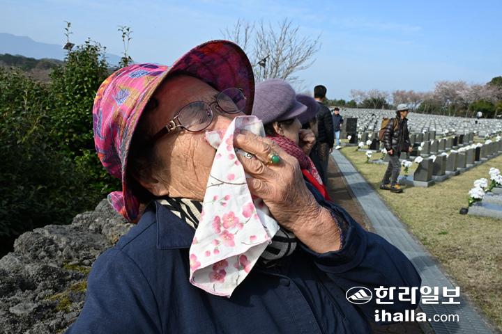 [한라일보] 제78주년 제주4·3희생자 추념일인 3일 오전 제주시 봉개동 제주4·3평화공원 내 행방불명인 표석과 위패봉안실을 찾은 유족이 희생자를 추모하며 안타까워 하고 있다.