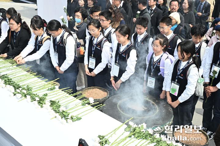 [한라일보] 3일 제주 4·3 평화공원에서 열린 제78주년 제주 4·3 희생자 추념식에서 4·3 희생자 유족과 도민들이 분향하고 있다.