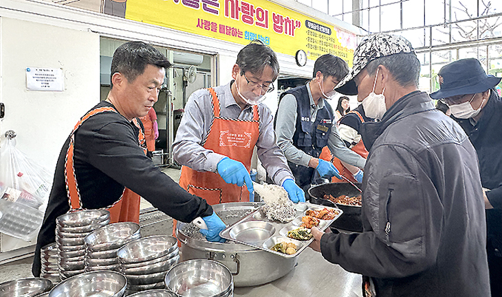 김원칠 서귀포시 부시장은 지난 7일 서귀포매일올레시장 공연장에서 제주특별자치도 공무직노동조합서귀포시지부와 함께 관내 거주 어르신 300여 명을 대상으로 서귀포시자원봉사센터(센터장 이상준)가 주관하는 '참! 좋은 사랑의 밥차' 무료급식 봉사를 실시했다.