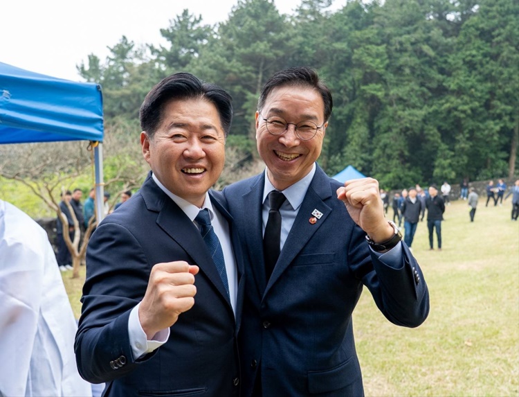 오 후보에 따르면 두 사람은 이날 제주시 조천읍에 있는 군위오씨 입도시조 묘역에서 만나 경선 과정에서 제시된 정책 공약을 비롯해 민선 8기 도정에 대한 평가, 이재명 대통령의 제주 타운홀 미팅 성과 등에 대해 의견을 나눈 것으로 전해졌다.