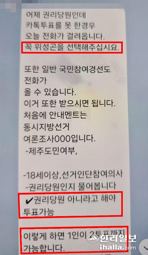 문대림 제주특별자치도지사 경선후보사무소가 공개한 문자메시지.