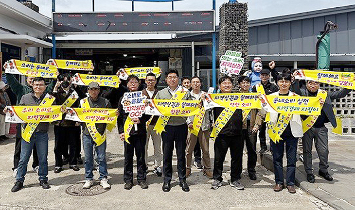 [한라일보] 구좌읍(읍장 안석봉)은 경기 침체로 어려움을 겪고 있는 지역경제에 활력을 불어넣기 위해 지난 10일 세화민속오일시장에서 '지역상권 소비 심백(心百) 캠페인'을 전개했다.