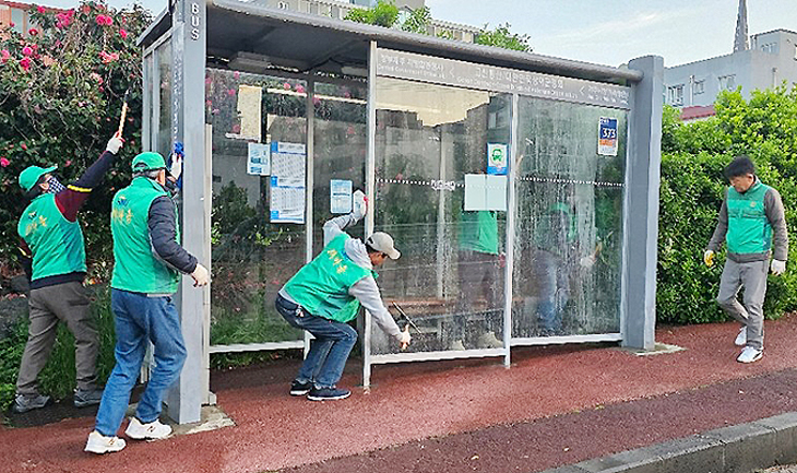 새마을지도자이도2동협의회(회장 김용민)는 지난 11일 회원 10여 명이 참여한 가운데 지역 내 제주시 연삼로 일대의 버스승차대에 대한 환경정비를 실시했다. 이날 회원들은 정류소 내·외부 고압 세척 및 주변 환경을 정비했다.
