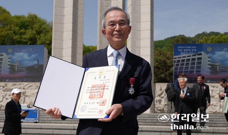 4·19 혁명이 일어난 지 66년 만에 건국포장을 수여하며 국가유공자로 선정된 김 회장은 이날 한라일보와의 인터뷰에서 "당시 함께 어깨를 맞대고 서울대 약대 교문을 나섰던 70여 명의 동기생 중 첫 유공자 선정"이라며 "동기생 모두에게 이 영광을 돌리고 싶다"고 소감을 밝혔다.