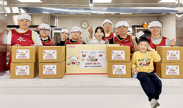 제주노블로타리클럽(회장 김기한)은 대한적십자사 제주특별자치도지사(회장 정태근)에서 지역사회 취약계층을 위한 '사랑의 빵나눔' 봉사활동을 실시했다.