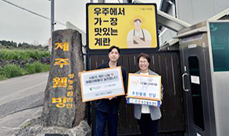 '애월 아빠들'(대표 이욱기)은 지난 20일 라온주간활동센터(센터장 김명열)에 닭고기와 계란을 전달했다.