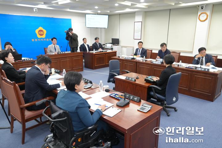 [한라일보] 교육의원 제도 폐지에 따른 제주도의회 의원 정수 조정안이 제주도의회 상임위원회 문턱을 넘었다. 다만 심의 과정에서는 선거구획정위원회의 권고안을 두고 "비례대표 취지가 무색해졌다"는 의원들의 비판과 함께 지역구 현실을 반영하지 못했다는 지적도 잇따랐다.