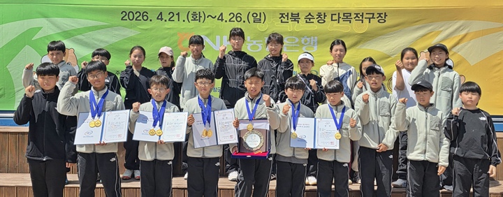 28일 제주특별자치도 소프트테니스협회에 따르면 아라초는 지난 21일부터 26일까지 전북 순창군 소프트테니스장에서 열린 제19회 국민체육진흥공단이사장배 전국 초등교 대회에서 개인단식과 복식, 단체전을 우승을 차지했다.