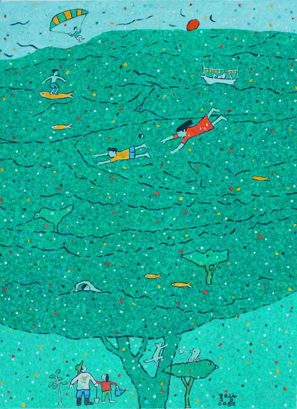 그는 '작가 노트'에서 "나의 그림은 모든 생명체가 서로의 존재 가치를 인정하고 소통하며 살아가는 이상 세계"라고 했다. 전시는 휴관일 없이 5월 10일까지 이어진다.