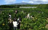 [한라일보] 23일 서귀포시 남원읍 휴애리자연생활공원 감귤체험장을 찾은 수학여행단 학생들이 제주에서만 즐길 수 있는 감귤따기 체험을 하고 있다. 강희만기자 ■기사제보▷카카오톡 : '한라…