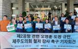 [한라일보] 제주도정이 제2공항 추진을 전제로 한 행정사무감사 자료를 제출했다는 지적이 제기됐다. 제주제2공항강행저지비상도민회의(이하 비상도민회의)는 17일 오전 제주도청 앞에서 기자회…