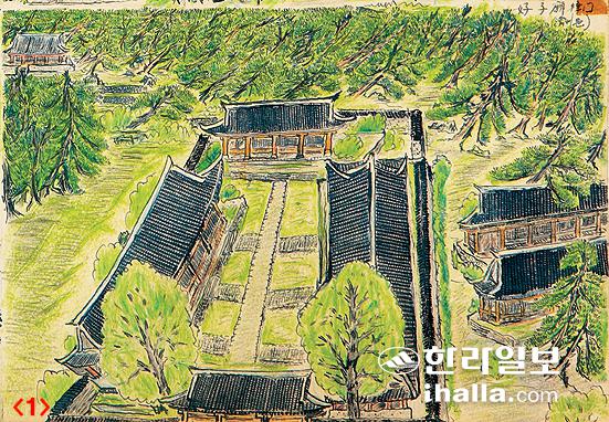 다케노의 그림①과 함께 '제주향교'로 가자니 여러 생각이 겹쳐 떠오른다. 일전에 필자는 미국의 인문 지리학자 데이비드 네메스의 '제주 땅에 새겨진 신유가사상의 자취'라는 책을 번역하여 펴낸 바 있다(2012년 제주시 우당도서관). 사실 그 책의 원제는 'Architecture of Ideology'라 하여, 문자 그대로 옮기면 '이념의 구축물' 또는 '구축물의 이념'이라 할 수 있는데, 이 자체를 책 제목으로 삼기에는 너무 난해해 보여 결국 그 책의 부제를 번역서의 표제로 삼았던 것을 떠올린다. 그런데 '이념의 구축물'이란 난해한 표현에 반해 우리는 '문화경관(cultural landscape)'이라는 표현엔 익숙하다. 그렇다면 '문화경관'을 어렵게 표현한 것이 '이념의 구축물'이란 말이고, '이념의 구축물'이란 말을 쉽게 표현하면 '문화경관'이라 정리하면 어떨까. 적어도 제주문화경관에서 조선시대 성리학적 이념을 읽어내는 데이비드 네메스 맥락에서 말이다.