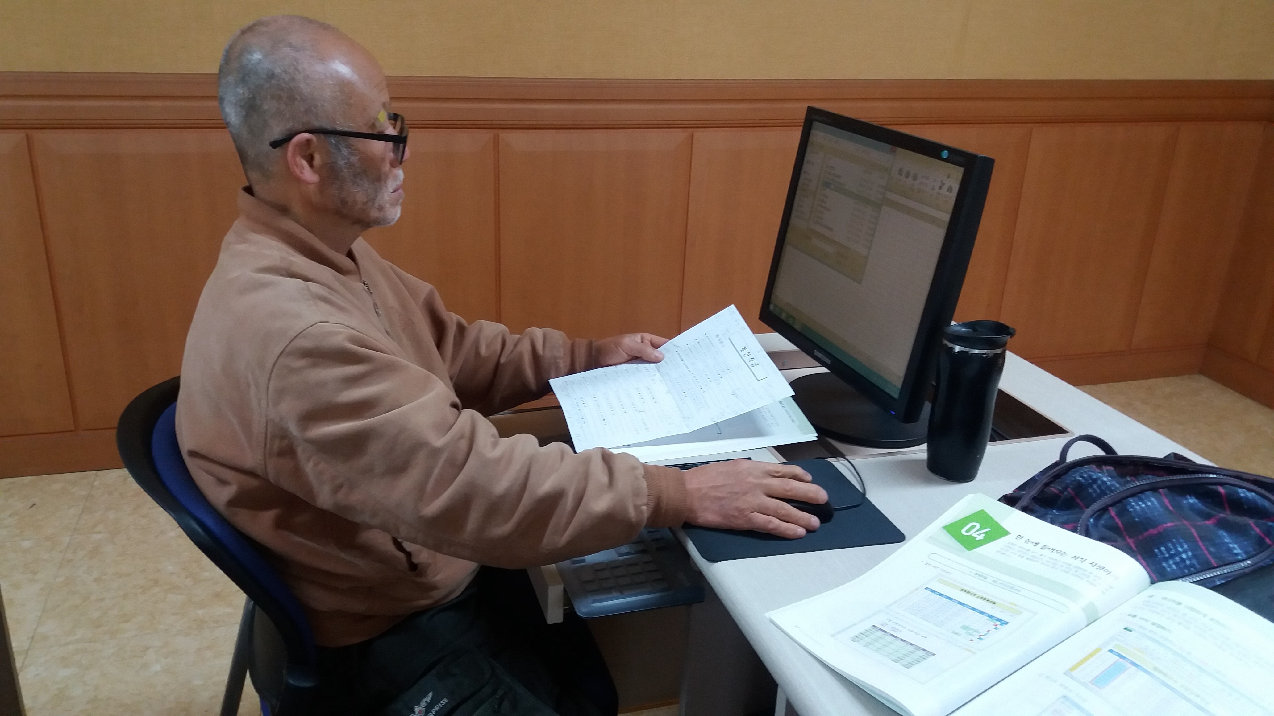 유연활아버지가 엑셀과목 연습에 골몰하고 있다.