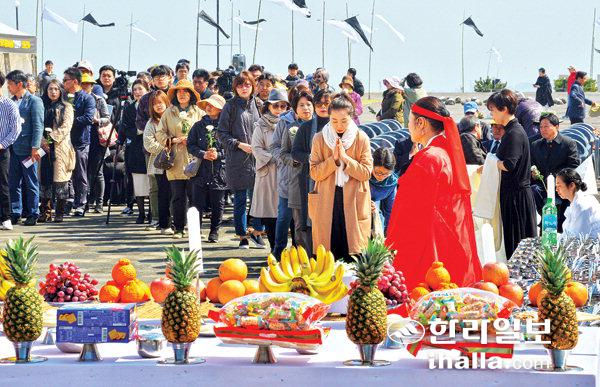 찾아가는 해원상생굿이 70주년 4·3을 맞은 올해는 제주도와 제주문예재단 주최로 9일부터 7일간 4·3평화공원에서 해원상생큰굿으로 치러지고 있다. 강경민기자