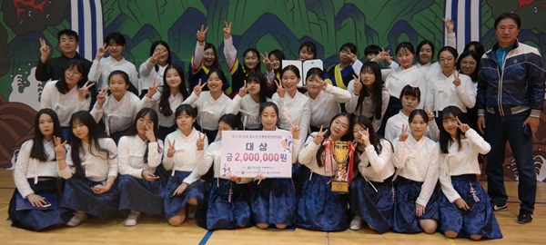 제주 대정여자고등학교(교장 고병석) 국악관현악단(지휘 김성주)은 지난 13일 강원도 정선군에 있는 사북청소년장학센터에서 열린 제27회 전국청소년전통문화경연대회에서 대상인 1위를 차지해 여성가족부 장관상과 상금 200만원을 받았다.