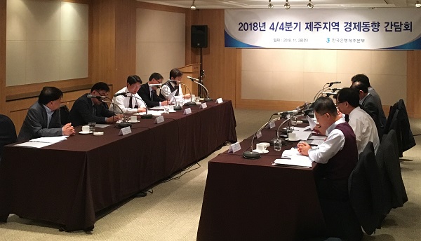 한국은행 제주본부(본부장 안성봉)는 28일 제주KAL호텔에서 지역 내 주요 업계 및 유관기관 인사를 초청한 가운데 2018년 4/4분기 제주지역 경제동향 간담회를 개최했다.