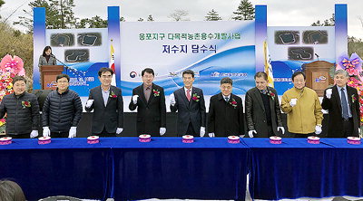 한국농어촌공사 제주지역본부(본부장 이강환)는 지난 14일 제주시 한림읍 상대리에서 '옹포지구 다목적농촌용수 개발사업 담수식'을 열었다. 지난 2005년 12월 시작된 공사는 기후변화에 따른 여름철 강우량 부족으로 가뭄이 빈발하면서 안전영농기반 구축을 위해 1년 앞당겨진 지난 2018년 8월에 완료, 현재 시험가동 중이다. 옹포지구는 앞으로 한림읍 내 11개 마을 600ha에 농업용수를 공급할 예정이다.