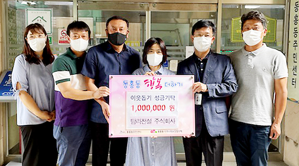 (주)탐라전설(대표이사 윤희금)은 지난달 30일 서귀포시 동홍동주민센터를 방문해 지역 내 어려운 이웃을 위해 사용해 달라며 '동홍동 행복 더하기' 이웃돕기 성금 100만원을 기탁했다.