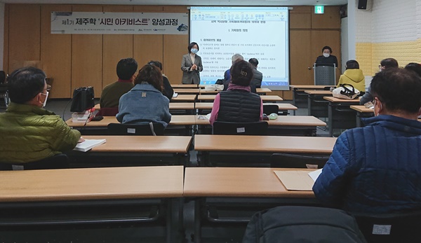 제주학연구센터가 제주문예재단 회의실을 빌려 지난 11일부터 제1기 제주학 시민 아키비스트 양성 과정을 운영하고 있다.