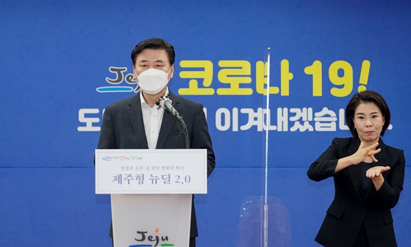 기자회견하는 구만섭 제주자치도지사 권한대행.