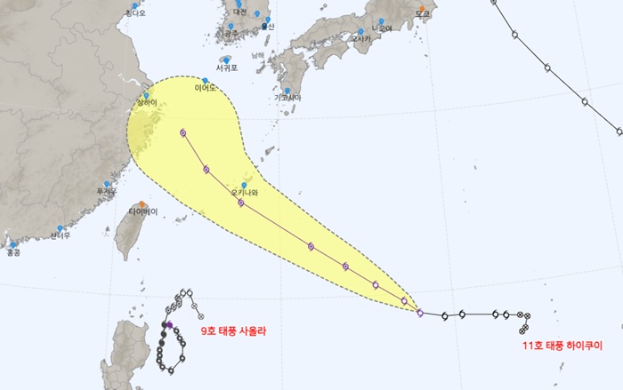 특히 필리핀 마닐라 북동쪽에 위치하고 있는 제9호 태풍 '사올라'와의 영향에 따라 '하이쿠이'의 진로가 변동될 가능성도 있다.
