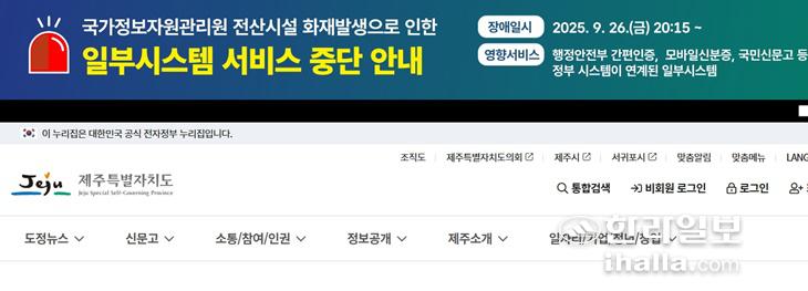 [한라일보] 제주특별자치도는 지난 26일 발생한 대전 국가정보자원관리원 화재로 중앙 부처 일부 행정 시스템이 중단됨에 따라 도민 불편을 최소화하기 위한 긴급 대응 체계를 가동하고 있다고 27일 밝혔다.