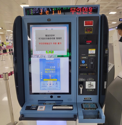 공항, 항만, 도청, 지하상가 등 도내 주요 장소에 설치된 무인민원발급기의 사용이 중단됐다. 공항과 도청에 설치된 무인민원발급기에는 '사용이 일시 중단된다'는 안내문이 붙어 있었다.